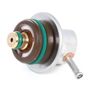 El regulador de presión mantiene constante la presión específica del sistema de alimentación de combustible. El regulador de presión se encuentra al final del tubo distribuidor y, en los sistemas monopunto, en la parte superior de la unidad de inyección central. Cuando se sobrepasa la presión ajustada, una válvula accionada por una membrana libera el orificio del conducto de retorno y el combustible sobrante fluye sin presión de vuelta al depósito.
